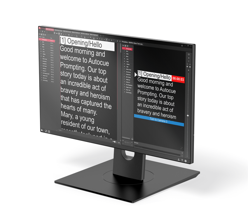 Autocue Pioneer is ready for the most demanding productions and customised for the need of professional operators. Shortcuts, bookmarks, and a run order manager are a given and you’ll find lots more, from settings for SOTs (Sound on Tape) and Presenter Instructions, to on-screen cue timer and message modules. Everything can be done while prompting continues because live editing is included as standard.